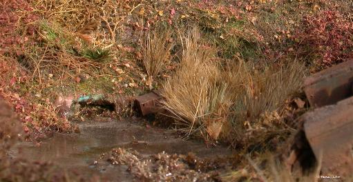 - Die Vegetation besteht aus verschiedenen Static-Gräsern aus dem Eisenbahnzubehör, Pinselborsten, Strauchwurzeln und Meerschaumästchen. Das Herbstlaub findet man im Gewürzregal.