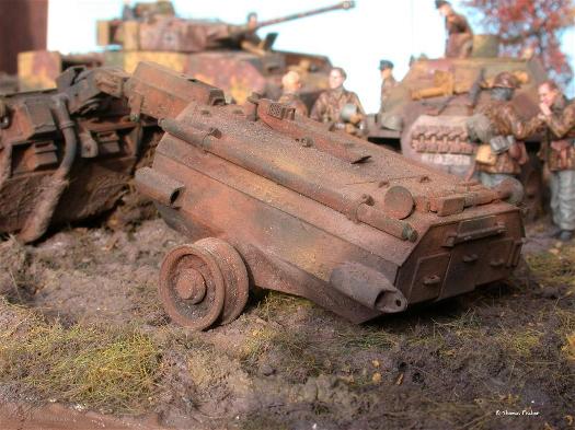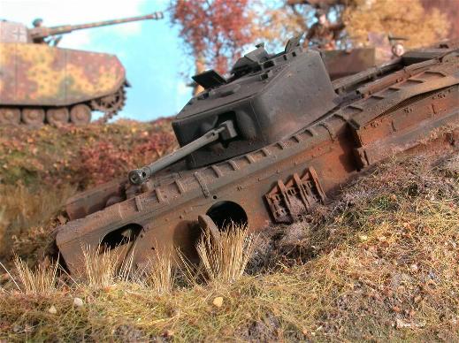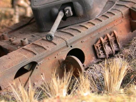 - Der Churchill Crocodile von Tamiya hier als ausgebranntes Wrack dargestellt -